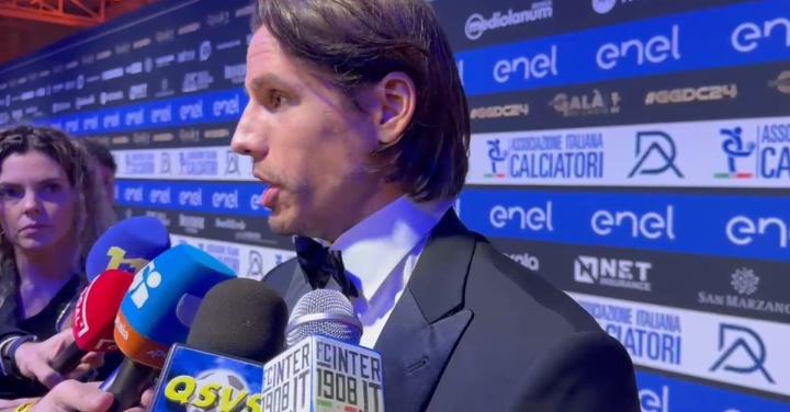 国际米兰的门将索默穿着西装,站在颁奖典礼的舞台上,接受着意大利球员协会颁发的荣誉。光芒四射的奖杯照亮着他认真的神情,在这一刻,他是球迷们心目中的英雄。在颁奖结束后,索默接受了媒体的采访。